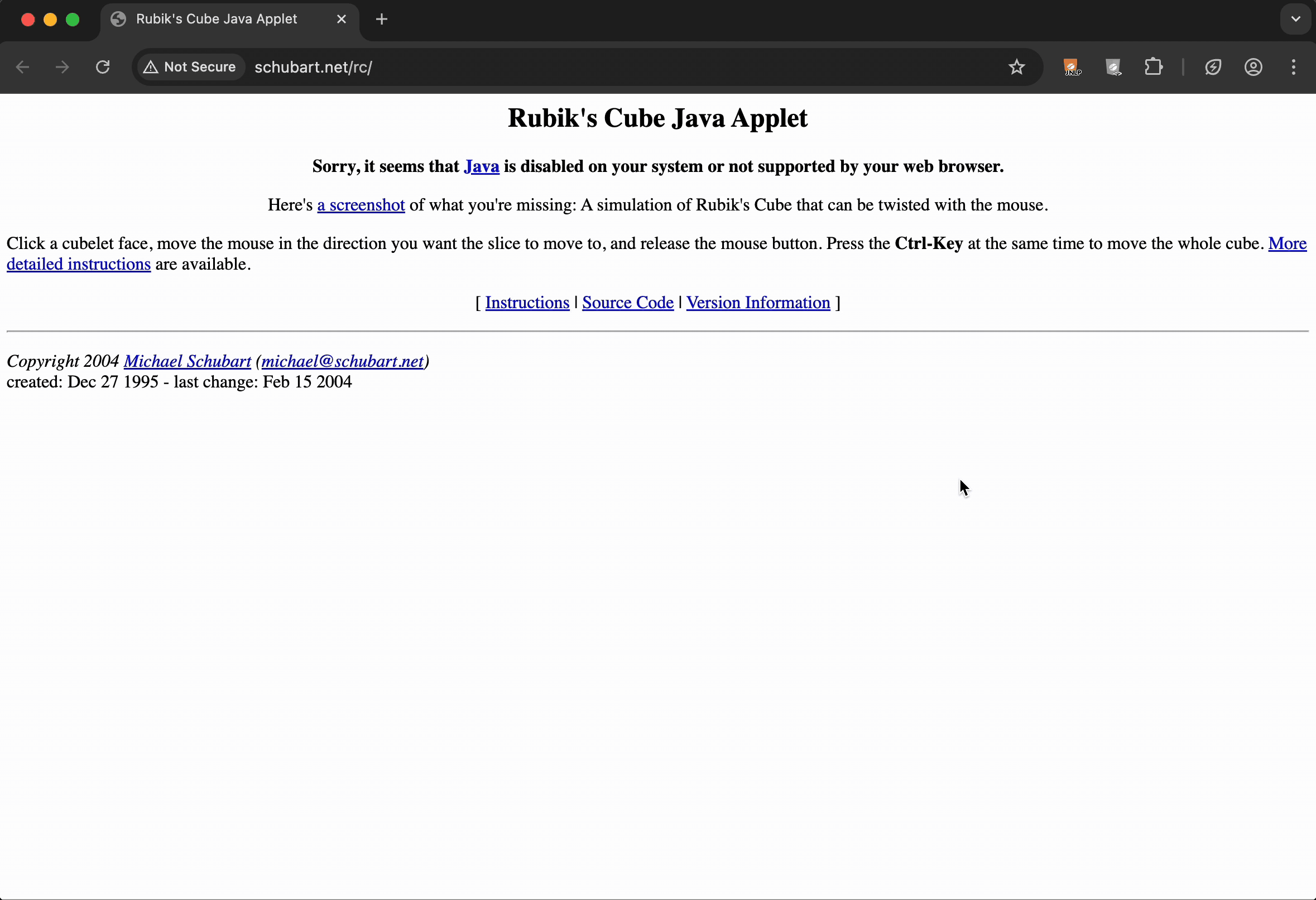 Visit a page with a Java applet, such as this public available Rubix Cube Applet and click on the CheerpJ Applet Runner icon in the toolbar and enable CheerpJ. Now you just need to enable the extension in the popup and you are ready to go!